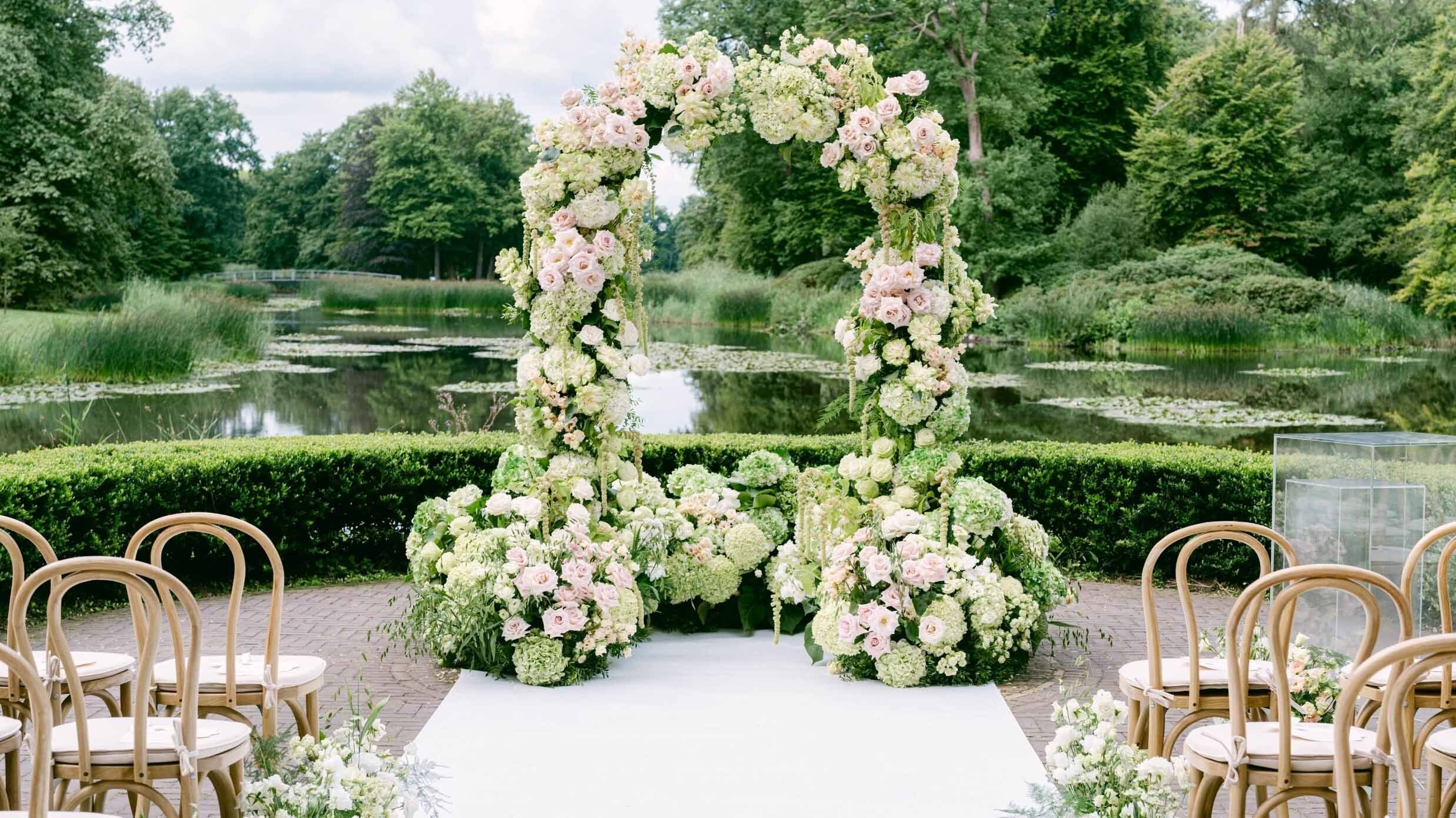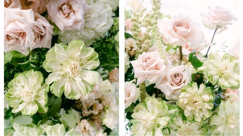 KH: I love working with refined color palettes where each hue is carefully chosen and combined. I'm also known for my work with roses. Veggie is a new variety that I first discovered at IFTF last year, and it immediately stood out as something truly different. Green is a trendy color this season, and when my clients came to me with a green palette for their July wedding at the luxury Dutch estate Parc Broekhuizen, I immediately thought of this unique rose.
