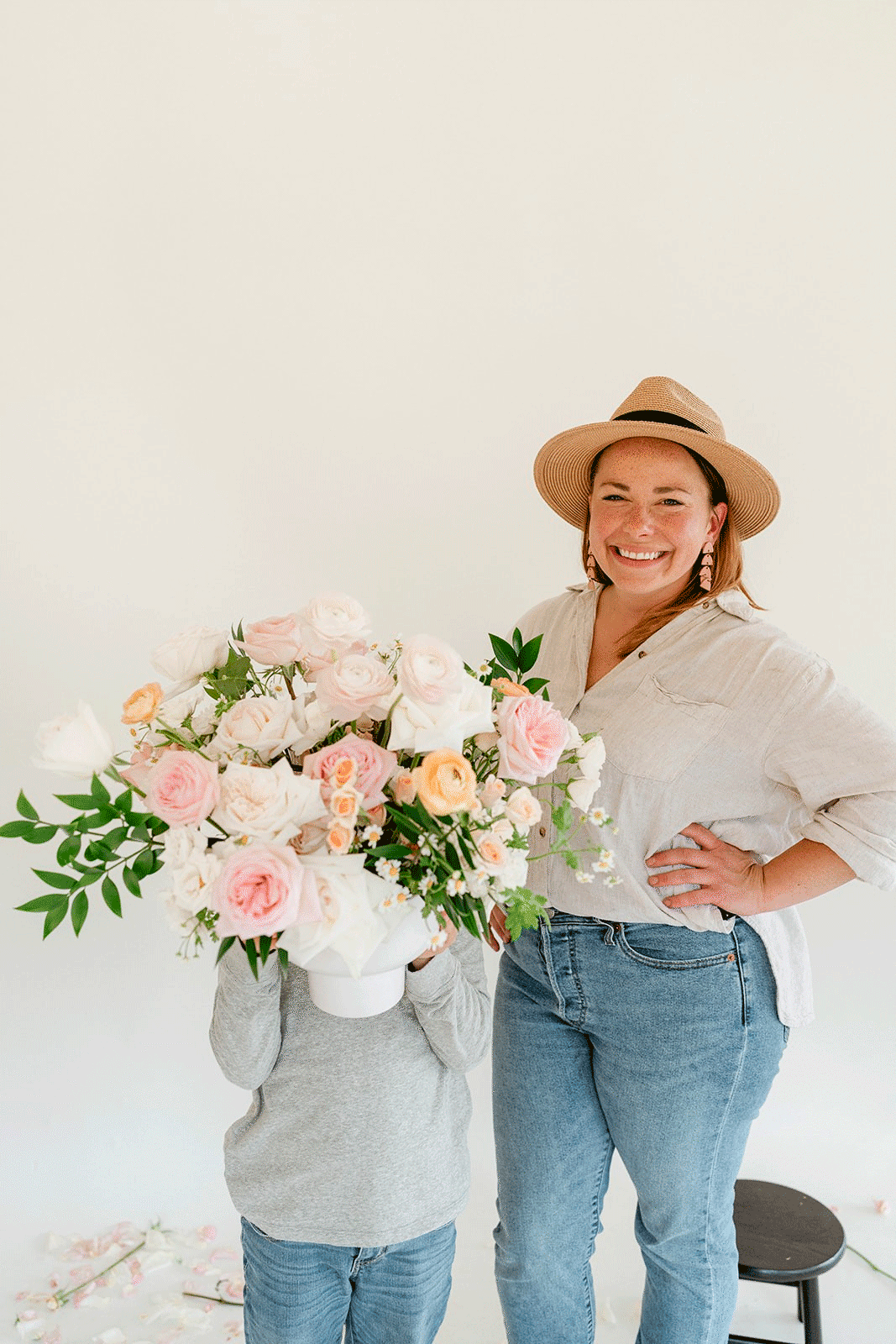 Her son has been a part of the family business since the very beginning. "I've made countless arrangements with him in my studio. He knows colors and flower varieties and loves to pick out stems to create his own arrangements. While he may bring a bit more chaos and keep my head on a swivel in the studio, having him be a part of it all with me is a joy! His little hands are such an inspiration, and it feeds my artist's soul to see my flower studio become a playground for him! I am a better florist because I am a mother! "