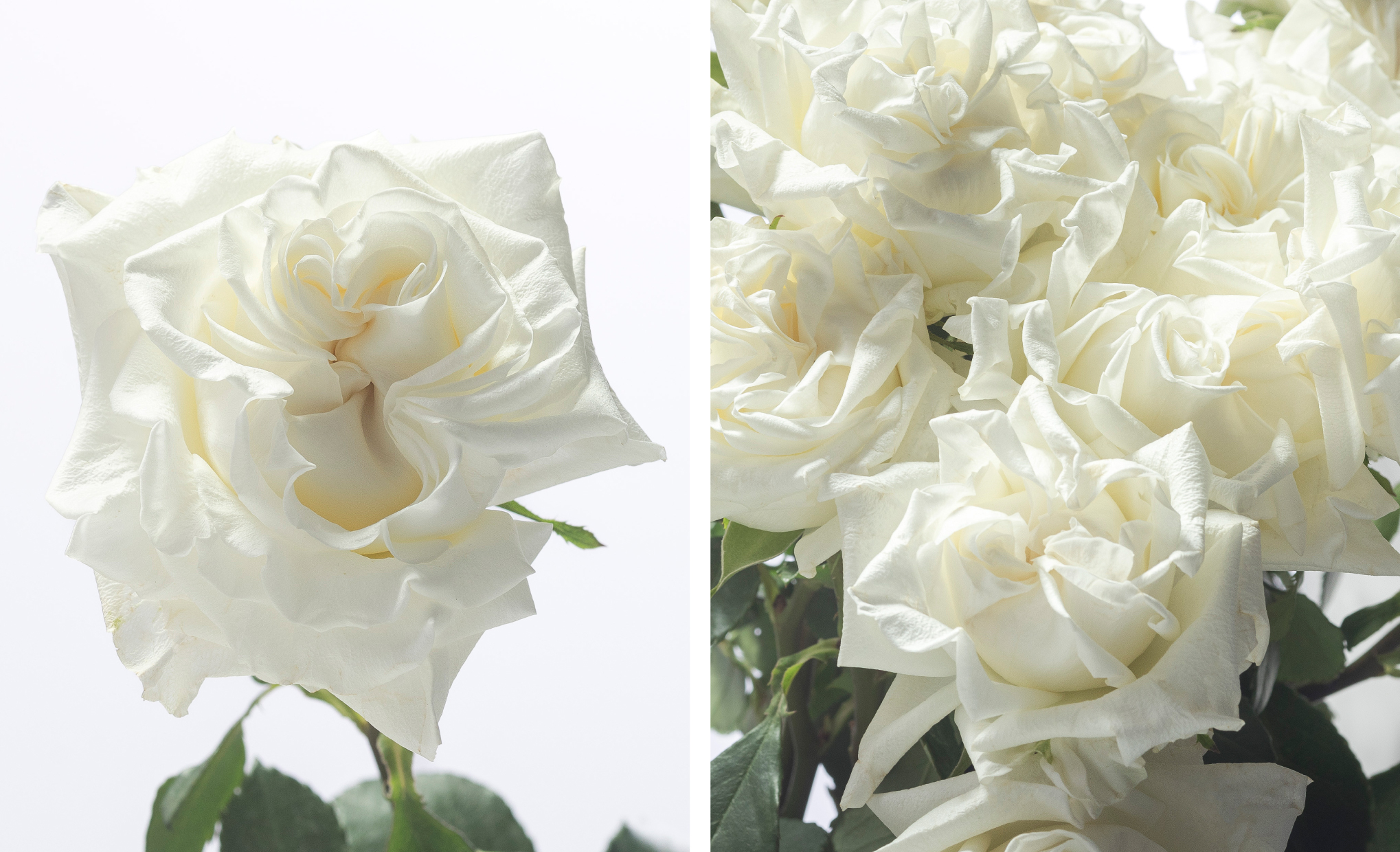 RP Helicopter is a pristine white garden rose with a distinctive structure that enhances classic and modern arrangements alike. It is known for its clean lines and unmatched refinement, elevating any design with a touch of luxury and precision.