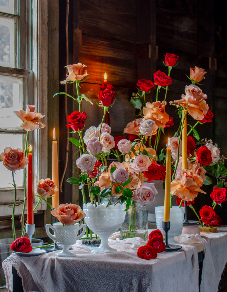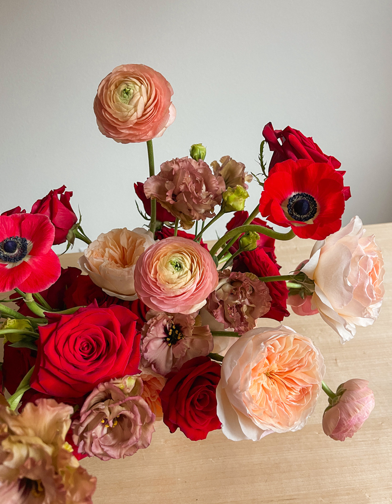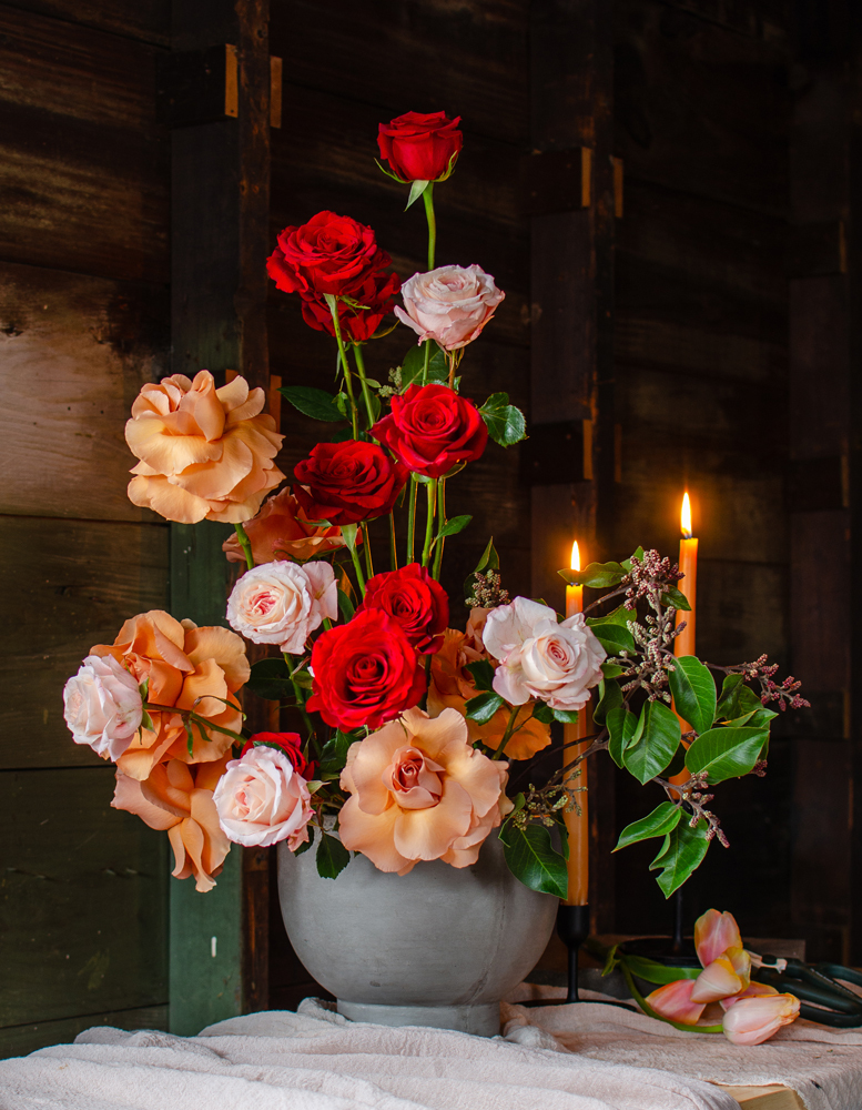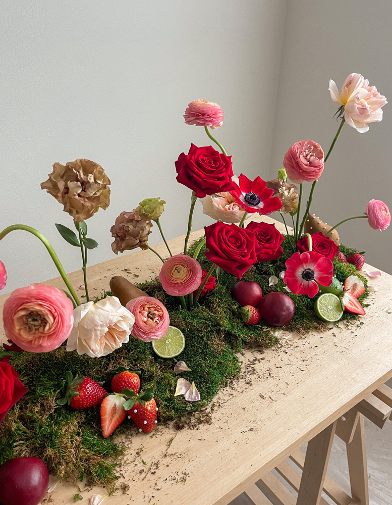 "This collaboration helped me to realize how versatile Red Roses can be in a color story. The darkness of the Anemones amplified a sense of unexpected romance to the overall scene."