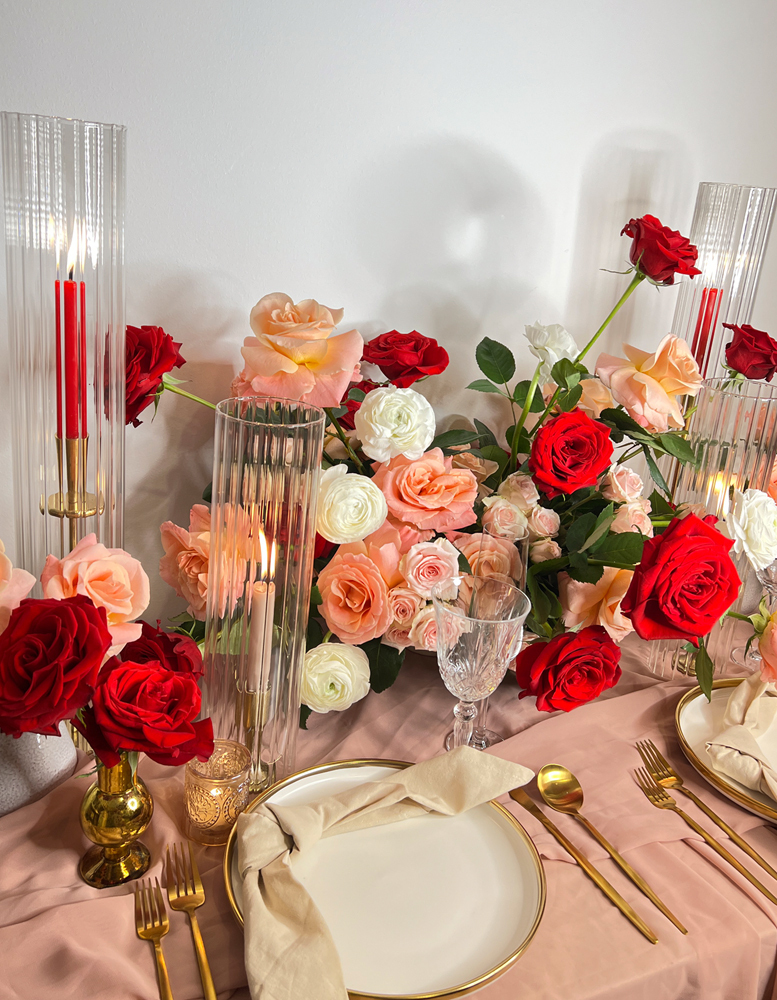 "All I can think about is a sea of flowers when Valentine's is around! It's a day where not just lovers celebrate but family members and friends. I envisioned a romantic private proposal dinner embraced with lush, vibrant fragrant florals and warm candlelight."