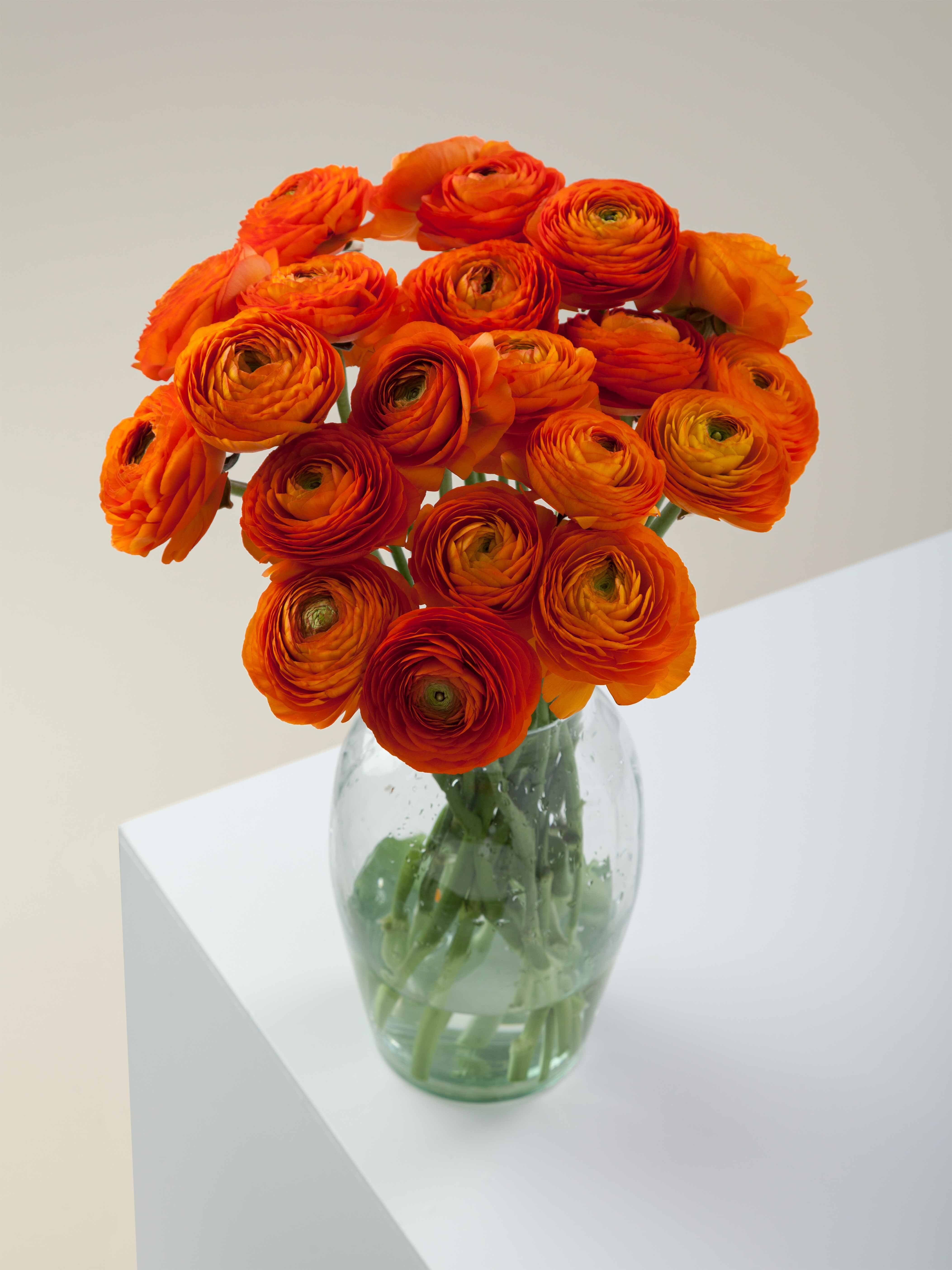 This ranunculus displays blood orange with softer tangerine tones towards the center. Its shape allows it to seamlessly compliment arrangements.