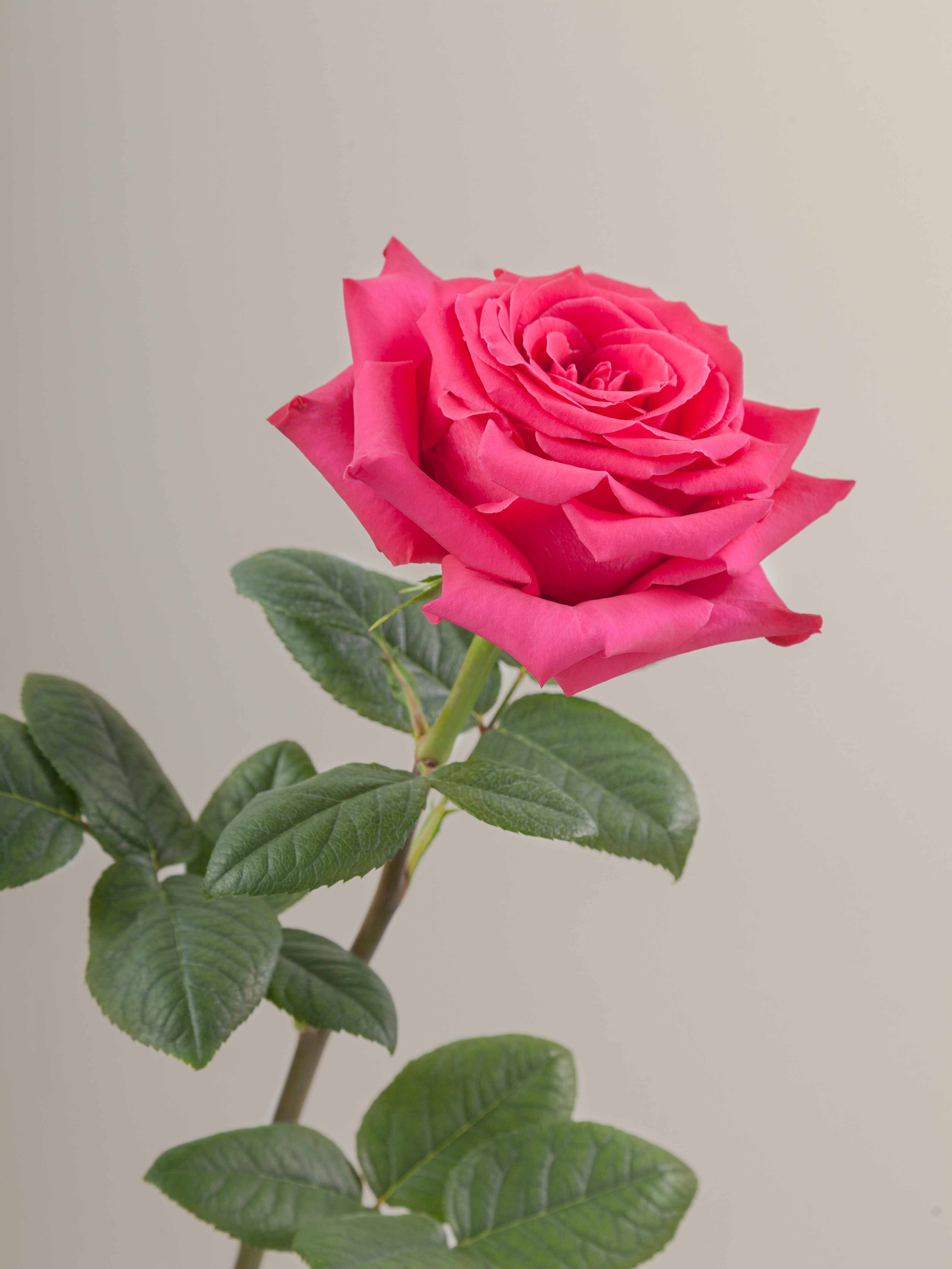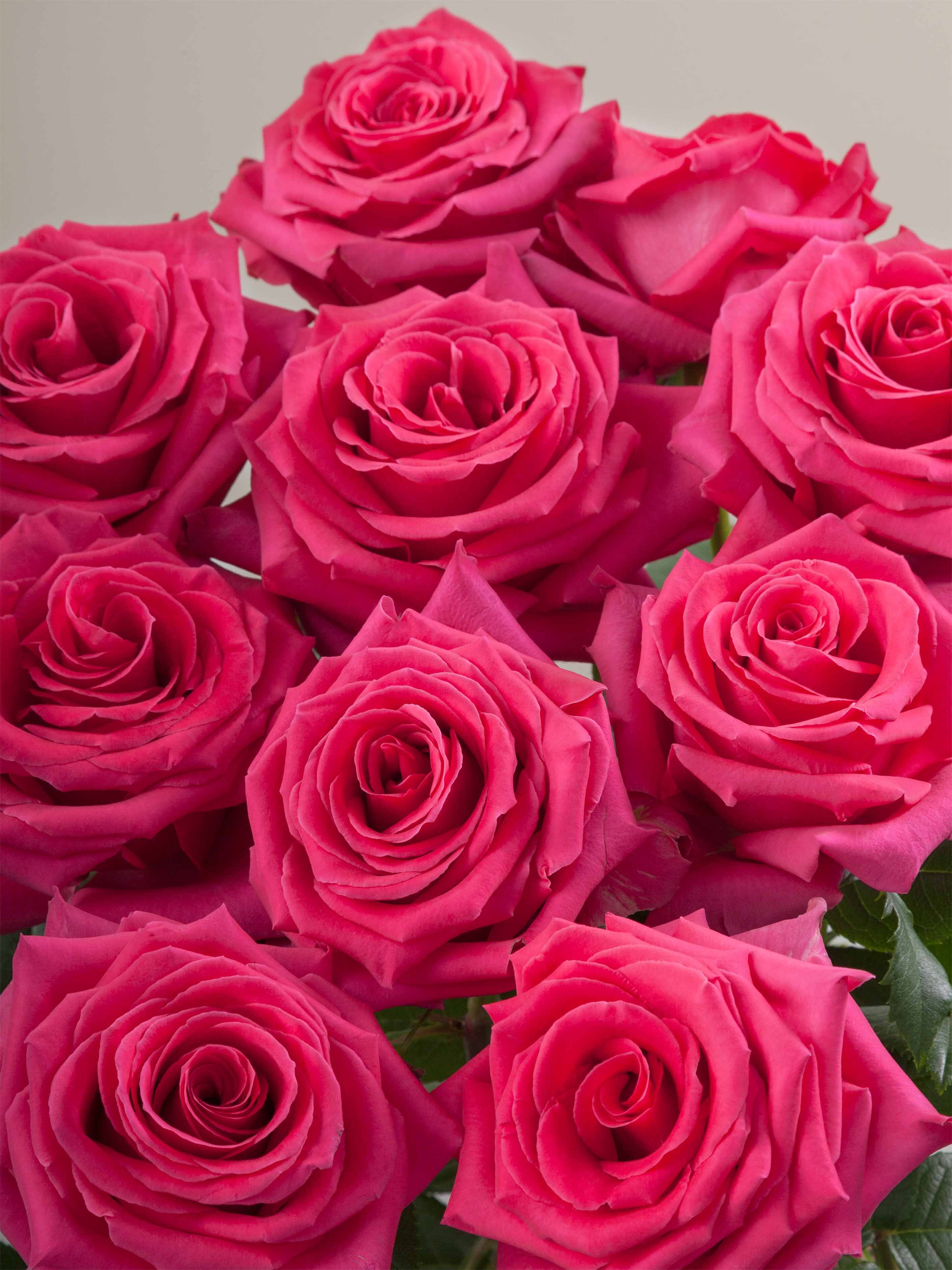 A striking hot-pink rose with a luscious texture. A favorite of flower designers to add a pop of color in romantic arrangements.