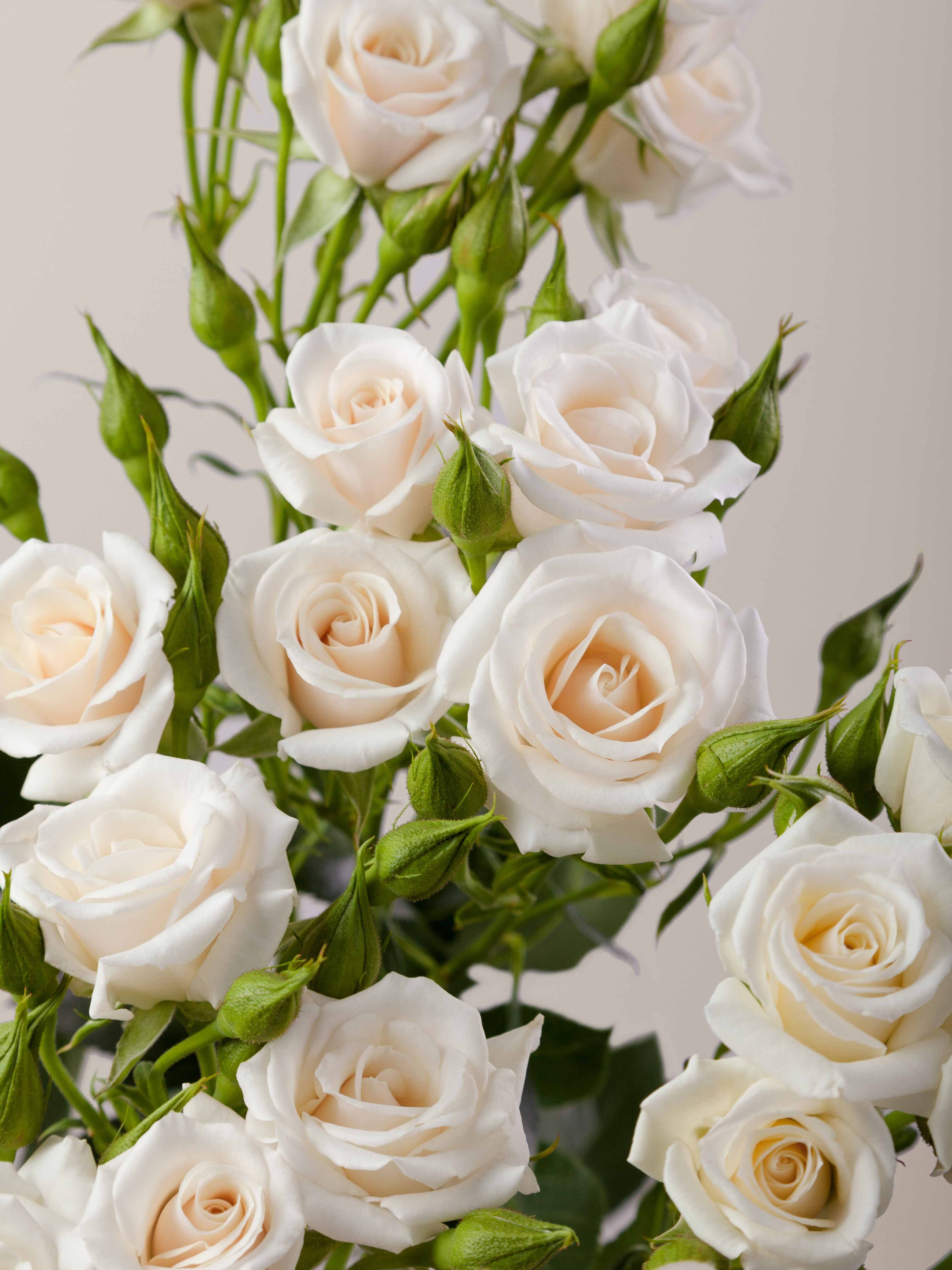 A true staple, White Majolikas are among the most sought after and popular spray roses on the market. Rosaprima's take on this variety has resulted in a long-lasting flower that produces a stunning shape and milky-white color that wows all.
