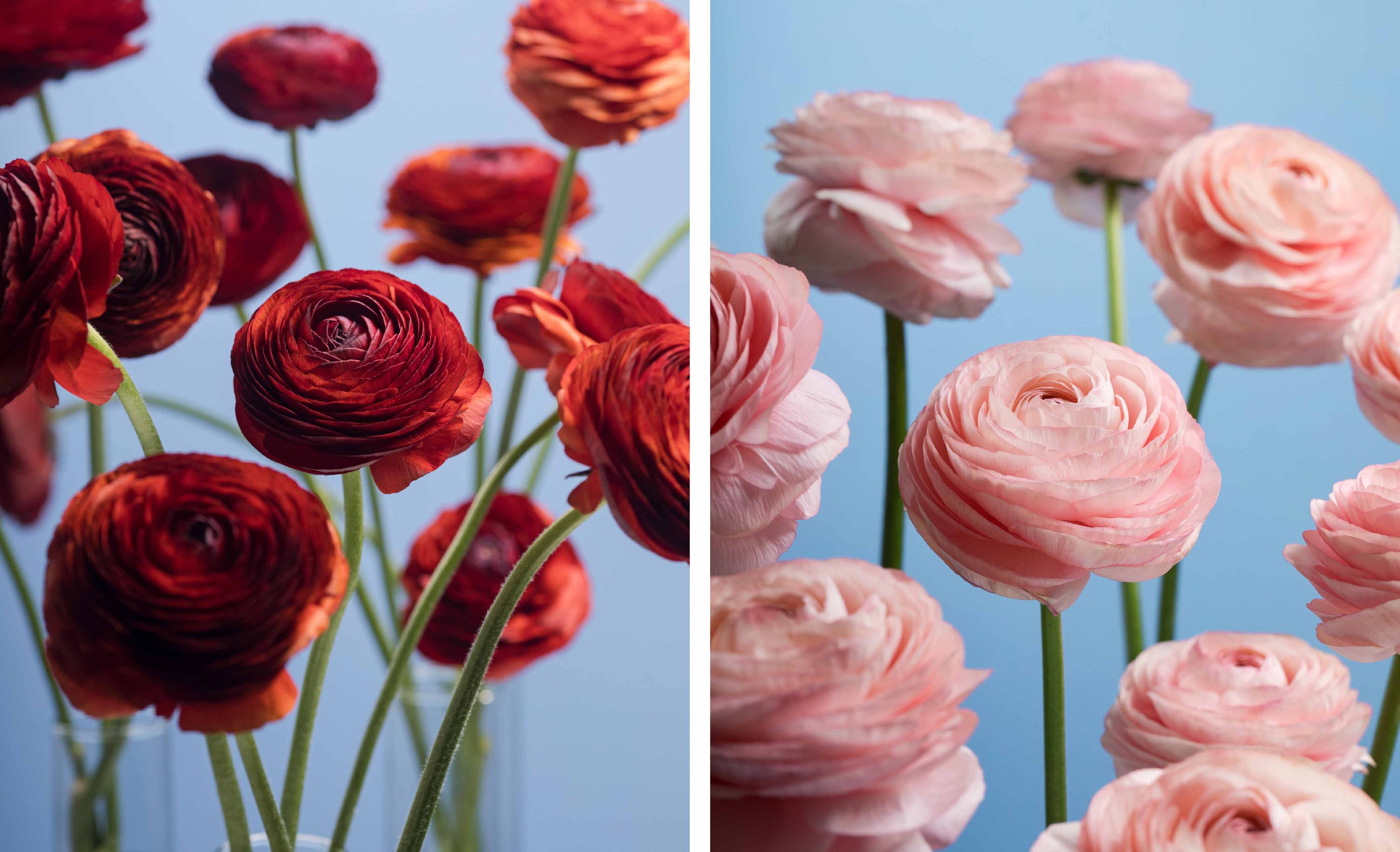 Earth Tones – A dramatic, chocolate-red ranunculus with 100+ petals—ideal for fall and editorial designs.