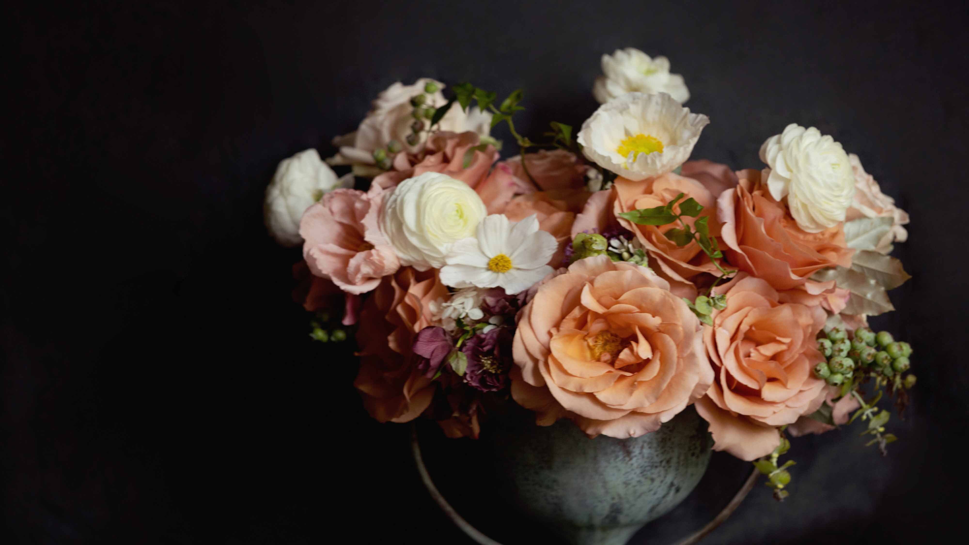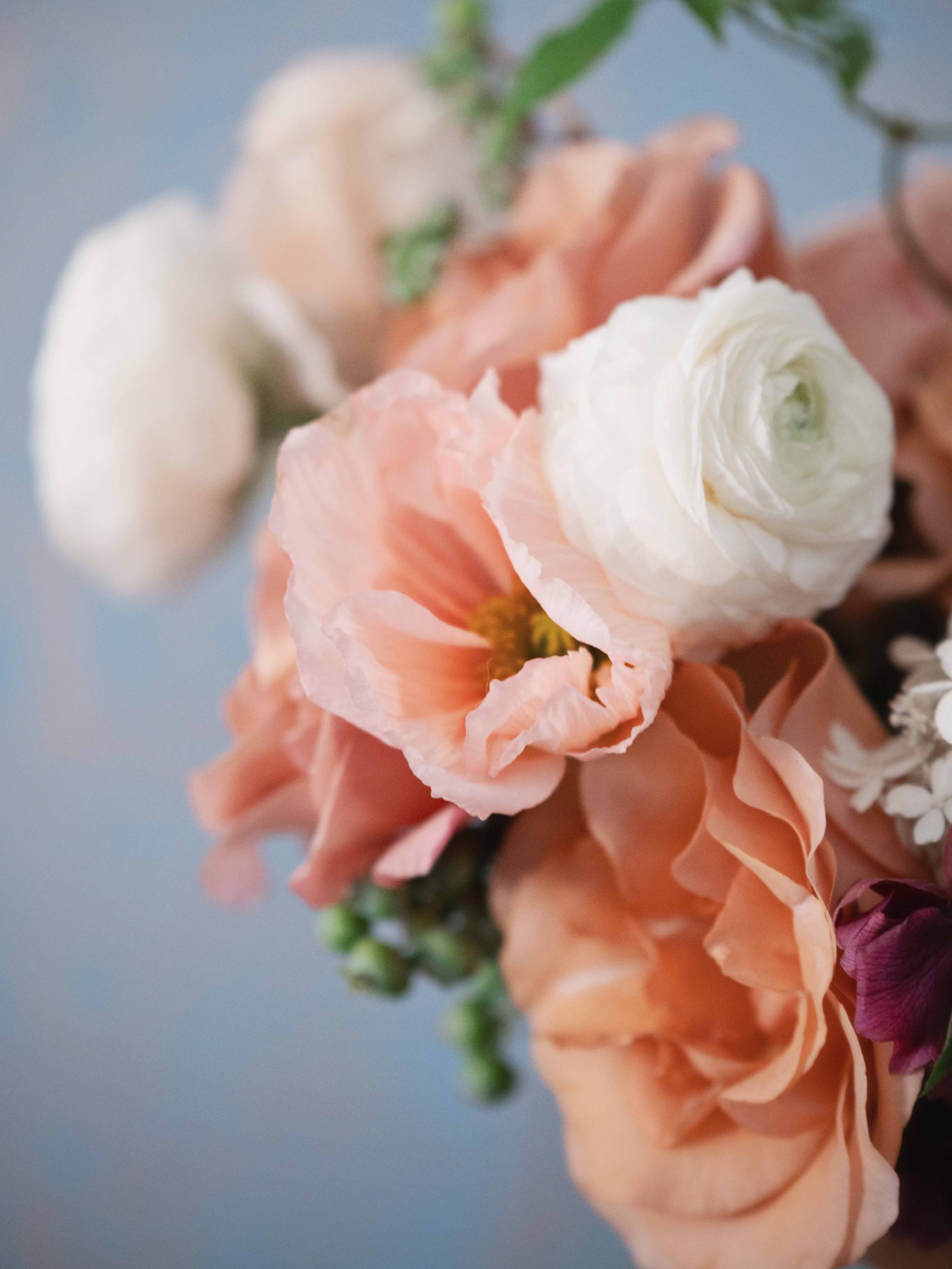 My favorite part of it all is learning the couples’ love story. There’s just something beautiful about a real-life love story, don’t you think? I love hearing how they met, and about their history, their families and their dreams. Even more special is weaving all these things into the floral plan, and the most important part of that plan is the bouquet. I can’t help it. The bouquet is deeply personal to me. It takes me so long to make sometimes. Even though I arrange flowers day-in and day-out, I often shake and perspire while making my bride’s bouquet. Handing this piece to the bride on her big day is the hardest, most stressful thing. I am so nervous and so happy at the same time. I know that after all the work and planning, my job is done. Delivering the bouquet is the parting love note between us, written raw, moody and emotionally in the language of flowers.